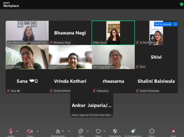 The sessions were led by speaker Nitu Walia Kanwar, founder of Empower Image, a distinguished executive coach and consultant. The virtual program was curated by Ms. Ritika Sarna and Ms. Garima Jain, initiative heads of Women in Leadership Roles. This program focused on empowering women by equipping them with actionable tools on mindset, storytelling, vocal presence, personal branding, and strategic networking.