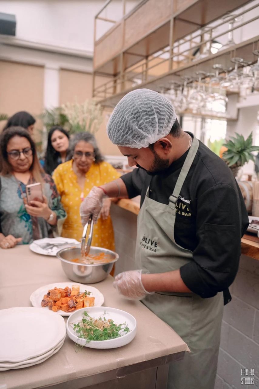 Attendees channelled their creativity, using a variety of waste materials, such as boxes, bottles, bags, denims, and t-shirts, and upcycled them with fabric scraps, buttons, laces, ribbons, sequins, and paints. Adding to the event’s focus on sustainability, the talented Chef Ashish from Olive gave a special demonstration on how to create a delicious, mouth-watering salad using common kitchen waste.